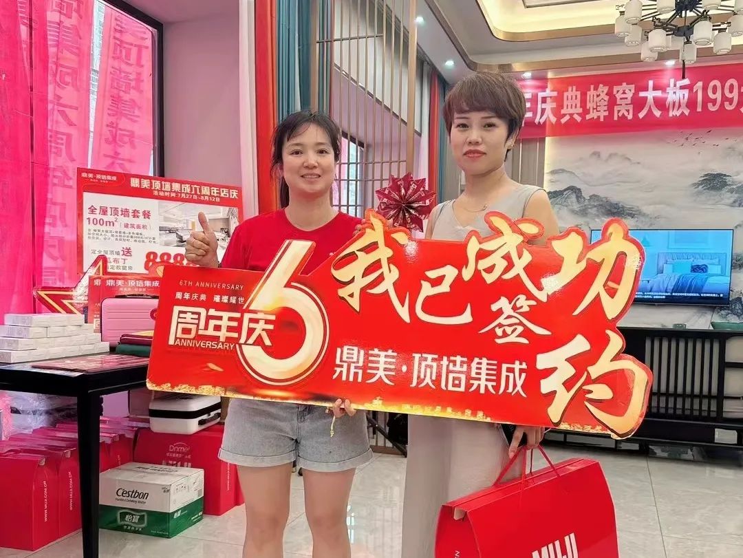 2023年(nián)7月(yuè)27日(rì)--8月(yuè)12日(rì),湖(hú)南(nán)邵東(dōng)鼎美(měi)頂牆集成門(mén)店(diàn)γ六周年(nián)慶活動圓滿成功!共簽32單,銷售額68萬,再創邵東(dōng)店(diàn)年(nián)內(nèi)新高(gāo)。