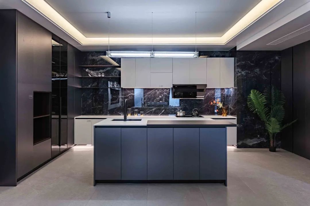 開(kāi)放(fàng)式廚房(fáng),用(yòng)流暢的(de)動線,承載起豐富的(de)烹饪功能(néng),餐廳島台+餐桌組合,形成交流的(de)絕佳場(βchǎng)所。