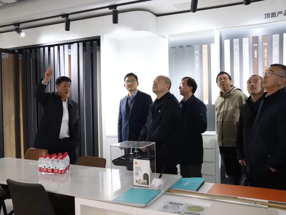 在浙江鼎美智裝股份有限公司展廳,徐春來(lái)一(yī)行(xíng)看(kàn)工(gōng)藝技(jì)術(shù),問(wèn)應用(yòng)落地(dì),聽(tīng)張轲介★紹鼎美(měi)20多(duō)年(nián)來(lái)不(bù)斷創新發展及未來(lái)規劃,并結合公司各類應用(yòng)場(chǎng)景及創新方式對(duì)鼎美(měi)裝配化(huà)裝修的(de)高(gāo)質量發展優勢進行(xíng)介紹。