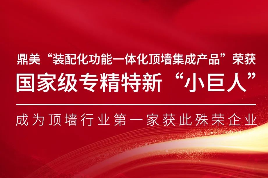8月(yuè),鼎美(měi)“裝配化(huà)功能(néng)一(yī)體(tǐ)化(huà)頂牆集成産品”榮獲國(guó£)家(jiā)級專精特新“小(xiǎo)巨人(rén)”,成為(wèi)頂牆行(xíng)業(yè)第一(yī)家(jiā)獲此殊榮企業(yè)