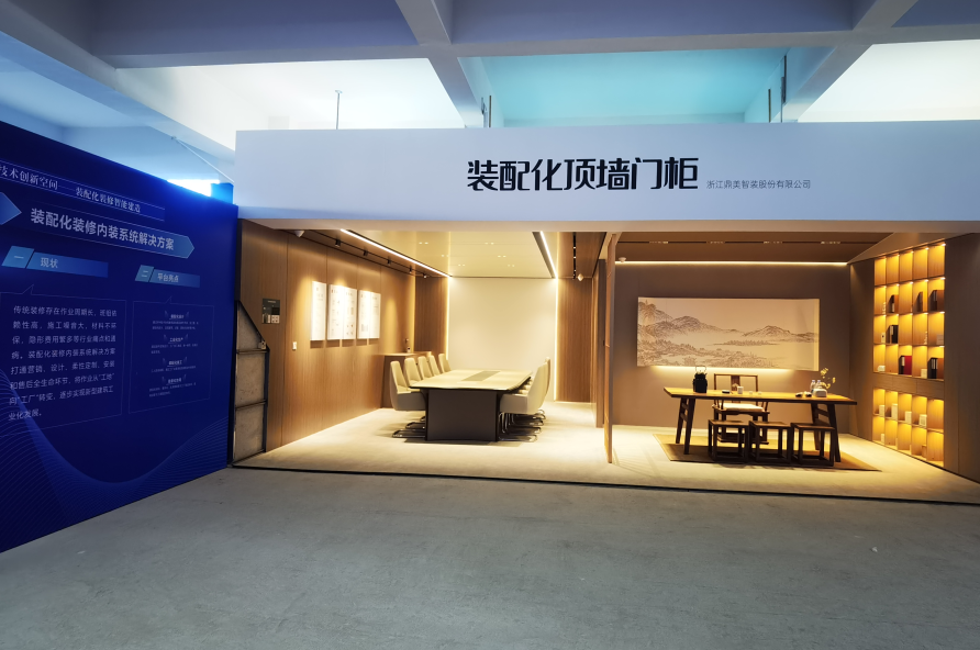 鼎美(měi)頂牆門(mén)櫃體(tǐ)系SI優化(huà)升級,對(duì)展廳進行(xíng)全新打造,呈現(xiàn)新形象,新價值,迎接裝配化(huà)裝修風(fēng)口的(de)↓到(dào)來(lái)