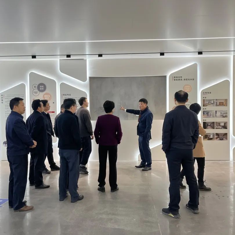3月(yuè)14日(rì),中共浙江省委黨校(xiào)胡雲祥副校(xiào)長(cháng)一(yī)行(xíng)赴浙江鼎美智裝股份有限公司走訪調研裝配化(huà)頂牆門(mén)櫃材料在λ裝修內(nèi)裝領域的(de)實際落地(dì)運用(yòng)。