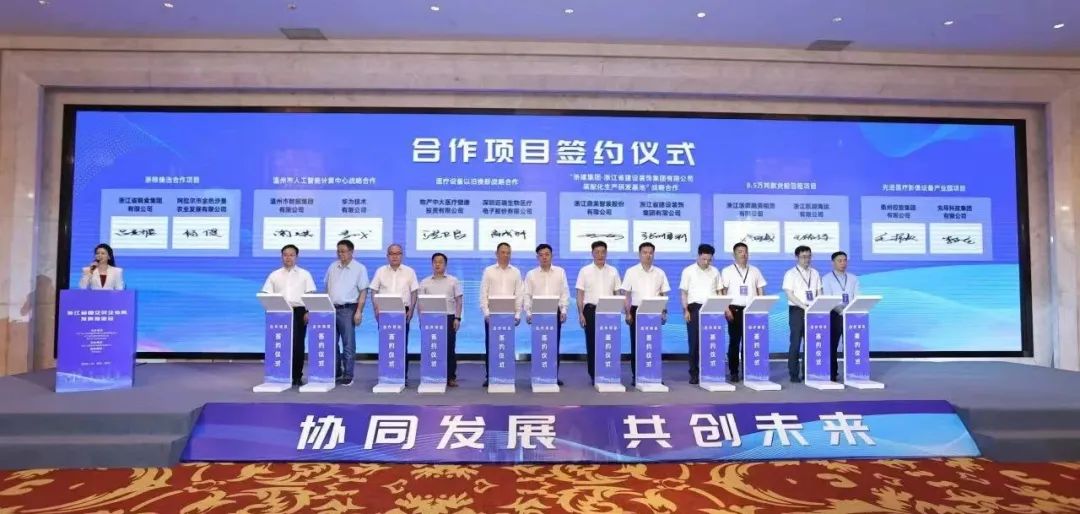 會(huì)上(shàng),12個(gè)國(guó)企民(mín)企合作(zuò)項目簽約,涉及項目金(jīn§)額128億元,其中浙江省建設裝飾集團有(yǒu)限公司與浙江鼎美智裝股份有限公司簽署戰略合作(zuò)。