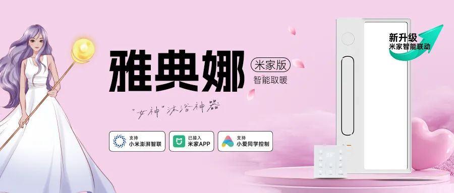雅典娜新升級,讓每一(yī)次沐浴都(dōu)成為(wèi)一(yī)次放(fàng)松身(shēn)心的(de)享受。米家(jiā)智 能(néng)聯動,讓溫暖觸手可(kě)及,讓智能(néng)生(shēng)活更加美(měi)好(hǎo)。詳情咨詢各大(dà)線下(xià)門(mén)店(diàn)~