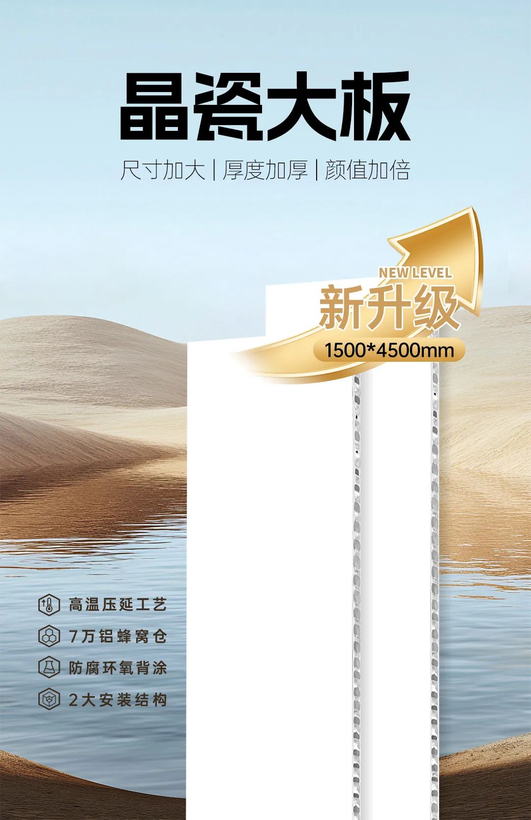 我們針對(duì)晶瓷大(dà)闆,做(zuò)了(le)全新的(de)升級——尺寸加大(dà)!厚度加厚!顔值加倍!